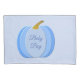 This awesome double sided pillowcase features a digital art image of a cute blue pumpkin with 3 different shades of blue getting darker towards the edges of the pumpkin. There is a green stalk attached to the top. A perfect design for celebrating a baby boy, especially at Thanksgiving. There is custom text so you can include a message. There are little blue pumpkins on the back so you have 2 designs on one pillowcase.