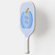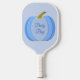 This awesome pickleball paddle features a digital art image of a cute blue pumpkin with 3 different shades of blue getting darker towards the edges of the pumpkin. There is a green stalk attached to the top. A perfect design for celebrating a baby boy, especially at Thanksgiving. There is custom text so you can include a message.