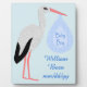 Cute Blue Baby Boy Stork Birth Announcement Plaque