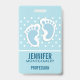 Name badge with a charming image of blue baby boy's footprints with a heavy white outline.