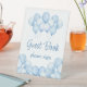 Watercolor balloons in cute pastel blue colour, with the words "Guest Book" and "Please Sign." You can personalize all the text to your liking, white background. This sign invites guests to leave their well wishes in the guest book.