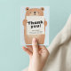 Thank your loved ones in the cutest way with this baby announcement card featuring a charming bear holding a sign that displays “Thank you” along with your baby boy’s name, weight, and size. The back of the card includes a heartfelt thank-you message, perfect for sharing your gratitude for gifts and support. A sweet design with a light blue theme, ideal for celebrating your little cub!
