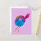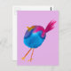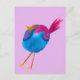 Cute watercolor bird original art illustration. Whimsical colourful blue bird art.