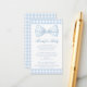 Discover the charm of our delightfully sophisticated book for baby cards designed for a classic and preppy baby boy shower. Featuring a charming baby blue bow ribbon set against a backdrop of light blue gingham pattern, these cards add an elegant touch to your celebration. Explore more options for creating a memorable and timeless event.