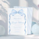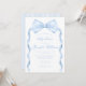 Celebrate the arrival of your little one with our cute shabby chic Coquette themed baby boy shower invitation. Featuring baby blue bow tie with ribbon on the side, this invitation sets the perfect tone for a sweet preppy celebration.