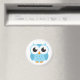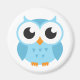 Fridge magnet or locker magnet featuring a cute little blue cartoon baby owl.