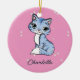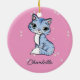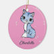 A charming custom name design featuring an adorable blue cat against a vibrant pink backdrop, adding a touch of whimsy and personalization.