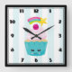 Cute Blue Cupcake with Kawaii Face Square Wall Clock