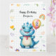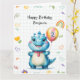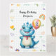 Cute Blue Dinosaur Balloon Boy birthday party Card
