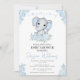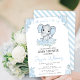 Watercolor cute light blue floral boy elephant baby shower invitation card.