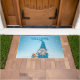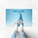 Cute gnome in blue suits with snowflakes on a blue background and Christmas decor