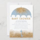 Cute Blue Gold Glitter Umbrella Baby Shower Invitation