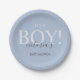 Cute Blue Modern Whimsical Typography Baby Shower Paper Plate