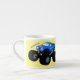 Cute blue monster truck cartoon illustration espresso cup