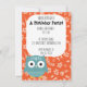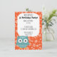 This cute woodland animal invitation is perfect for a children's birthday party or other special event. This design features a cute blue owl against a bright orange flowered background. These flat panel cards have an owl print patterned back. This coordinates with other items in our Woodland Whimsy collection. Use the fill-in-the-blank fields to easily customize this invite with your party information.