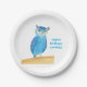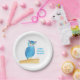 Cute Blue Owl Personalized Paper Plates, Birthday Plate