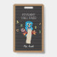 This adorable blue owl hall pass badge is ideal for elementary school teachers . The background looks like a fake letter board .But it isn't one . It is just an optical illusion . Personalizing it is easy . You can choose between a lanyard or a metal clip as an attachment. Just use the provided fields on the template . Look for the matching classroom door sign !