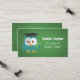 A cute blue owl wearing a graduation hat and eye glass carrying a green book on a green chalk board like background. The owl mascot is perfect because it represents knowledge and wisdom. Reverse page include space for indicating credentials and education details. An adorable business card for elementary and preschool teachers, tutors and anyone in the education and academics related businesses.