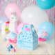 Custom blue favour boxes. Blue ribbons and party balloons design. Edit name to personalized.