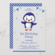 Cute Blue Penguin First 1st Birthday Party Invitation