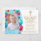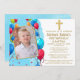 Cute Blue Photo Boy 1st Birthday Baptism Invitation