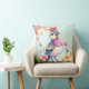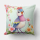Cute Blue Pink Bird Floral Throw Pillow