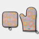 Cute Blue Pink Pastel Donuts & Hearts Oven Mitt & Pot Holder Set