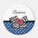 Enhance your girly style with this cute blue and white polka dot pattern magnet with a trendy black and white chevron bow and a chic red ribbon rose. This blue and red retro meets modern design can be personalized by adding the name of your teen girl. Flat printed image, NOT actual rosette ribbon and bow.