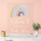 Welcome guests to your rainbow-themed baby shower with this adorable acrylic baby shower welcome sign. A watercolor rainbow is displayed at the top in shades of gold, blue, and brown with a transparent acrylic background. The watercolor rainbow baby shower welcome sign features a black calligraphy script. Personalize the modern baby shower welcome sign with the mother's name and date of the shower.