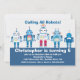 Start your party off right with our modern blue Robot Birthday Party invitation. Our fun robot kids birthday invitation features a cute Robot set on a stripe white background with blue & grey stripes. Perfect for a 1st birthday or any boys birthday... just change the birthday. Fully customizable by you with your information. Visit our shop for matching robot thank you note cards, robot postage stamps and robot stickers. ©Lily Bimble