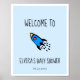 Cute blue rocket baby boy Baby shower welcome Poster