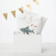 This cute and modern boys' baby shower favour bag design features a blue shark cartoon, with fish, bubbles, seaweed, waves, and sand, and can be personalized with the parents' names and date of your party. The perfect adorable sea and ocean-themed addition to your co-ed couples' baby shower.