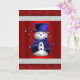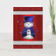 Cute Blue Snowman on Red Christmas Card
