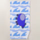 Cute Blue Spaceship on Waveworld Clouds Beach Towel