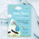 Cute Blue Stork Baby Shower Invitation