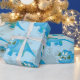 Cute Blue Triceratops Dinosaur Christmas Kids Wrapping Paper