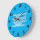 Cute Blue Tropical Fish Pink Fins Large Clock