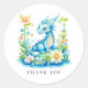Cute Blue Turquoise Green Dragon Thank You Classic Round Sticker