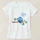 Cute blue twitter bird cartoon on woman's shirt