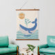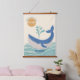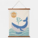 Cute blue whale kids room hanging tapestry. This cute whale and encouraging message to “make your own splash” is a fun way to incorporate sea life in a baby nursery or kids play room or kids room bedroom décor. Featuring an illustration of a blue whale in a wavy sea, you can customize the name to personalize it. You can find more products with this design in the Blue Ocean Animals Nursery Décor Collection in the Beautifully Abstract store. (© artwork design Beautifully Abstract)