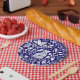 In beautiful dark blue and white, a cute sitting bunny rabbit is surrounded by birds and a stylized woodland setting, filled with leaves, flowers, berries and swirling vines. The artwork was inspired by antique Delft, Dedham and oriental Chinoiserie pottery motifs and colours. Perfect for everyday use in your blue and white decor, or for any special occasion such as a garden party. Whimsical, unique, original artwork & design by Tuzi Williams. Sold only by Zazzle, with a 100% customer guarantee.
