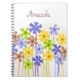 Cute blue yellow brown simple flower drawing name notebook