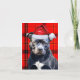 Cute Bluenose Pitbull Santa Dog Red Plaid Holiday Card