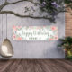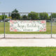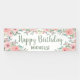 Cute "Happy birthday" outdoor (or purchase one for indoors) banner for your springtime or summer birthday party celebration. Beautiful blush pink watercolor flowers and sage green leaves on a white background. Personalized with the name of the guest of honour.