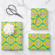 Cute Boho 70s Retro Shapes Pattern Green Yellow Wrapping Paper Sheets