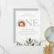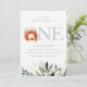 Cute Boho Lion Foliage First Birthday Party Invite