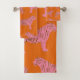 Cute Boho Orange and Pink Tiger Art Pattern Bath Towel Set