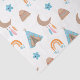 This cute tissue paper is versatile and can be used for giving gifts or art and craft projects. The design features a boho teepee tent, mountain, moon with feathers, rainbow and stars on a white background.