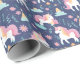 Cute Boho Unicorn Rainbow Clouds Blue Pink Wrapping Paper