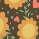 Cute Bold Yellow Brown Floral Whimsical Pattern Wallpaper
